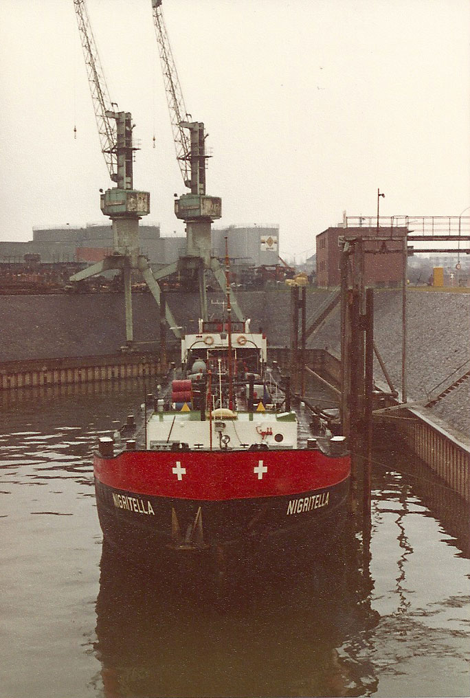 MTS NIGRITELLA (7000411) fuhr ab 1983 als MÖWE, HERMA und WILD MAA am Main, 1990 abgewrackt.