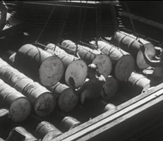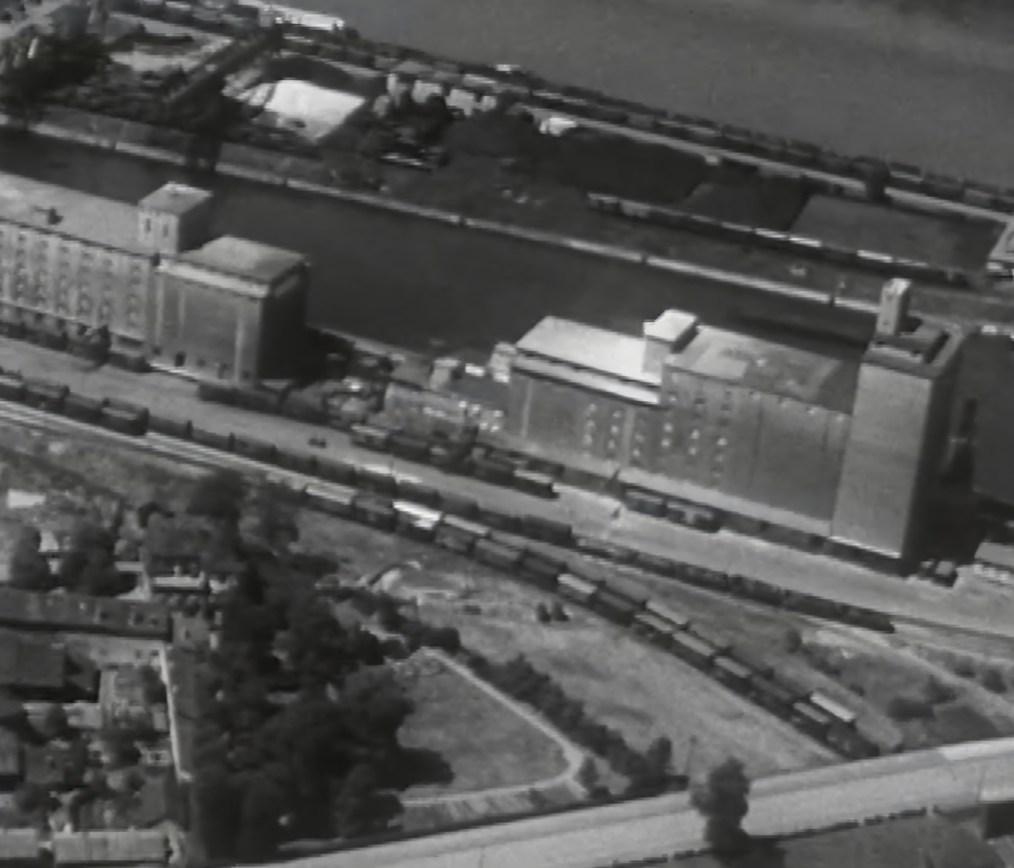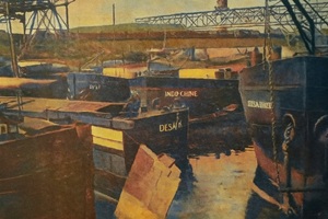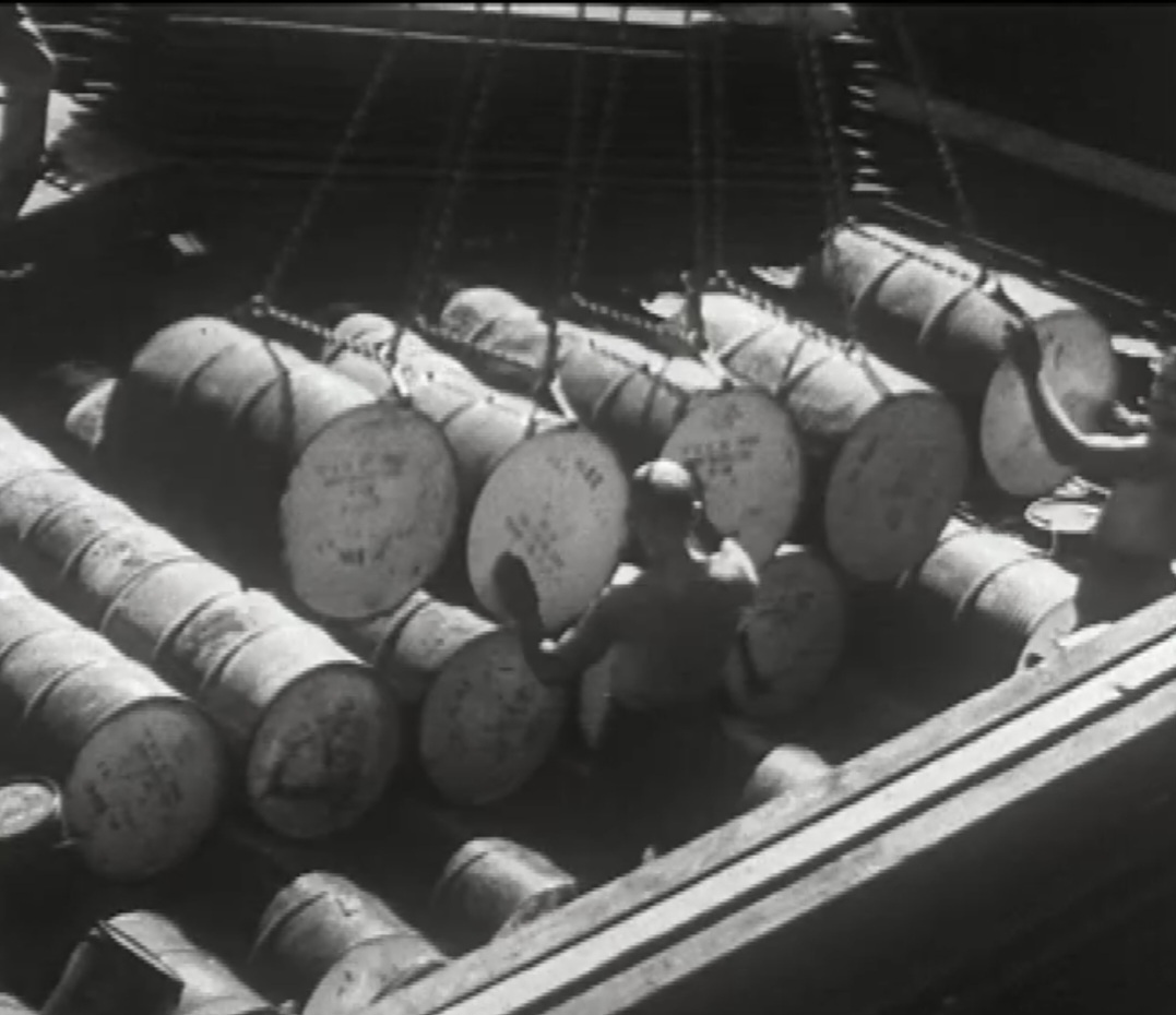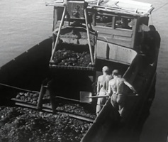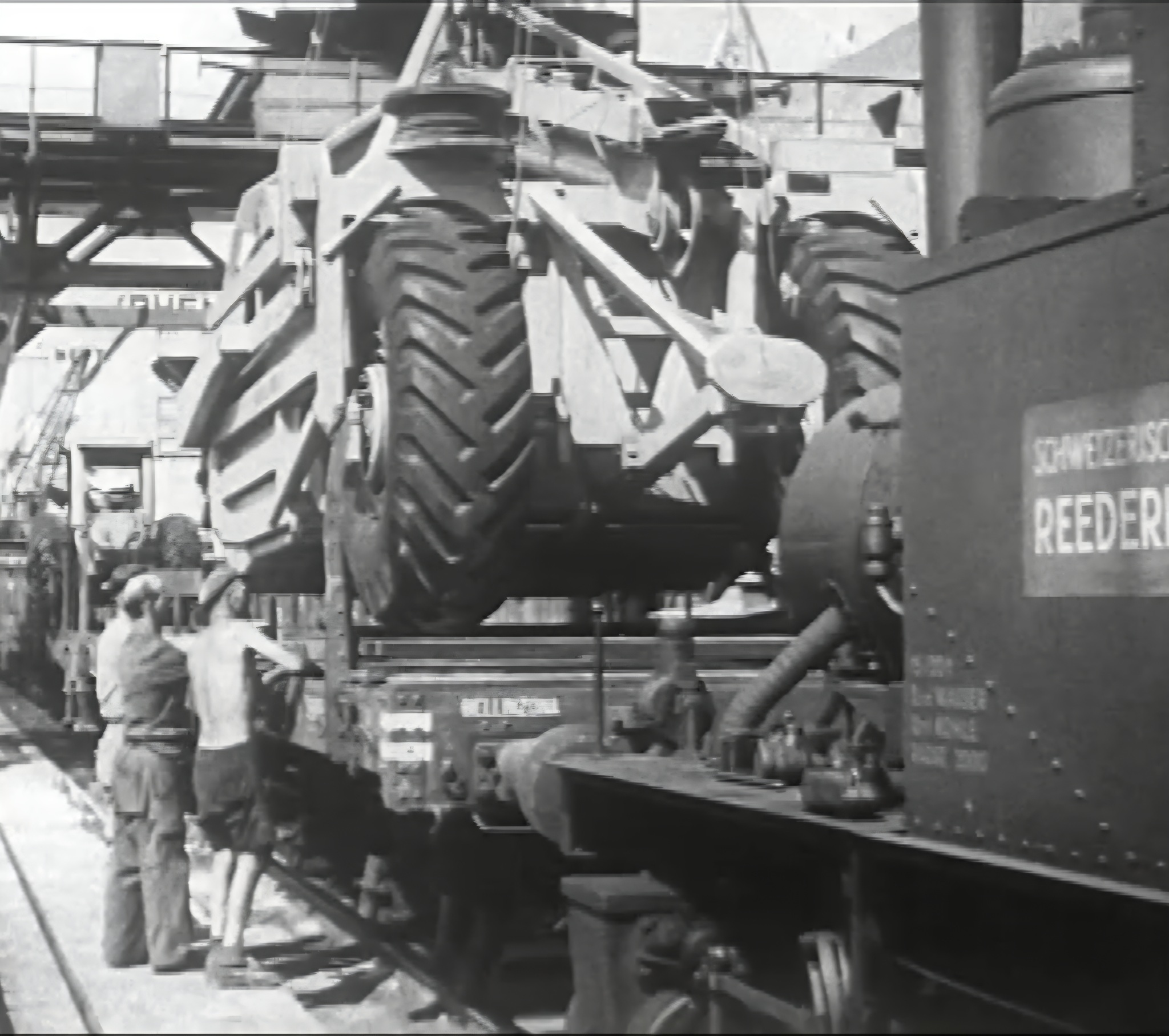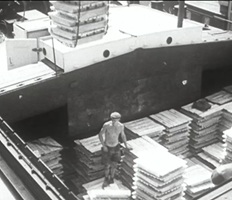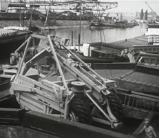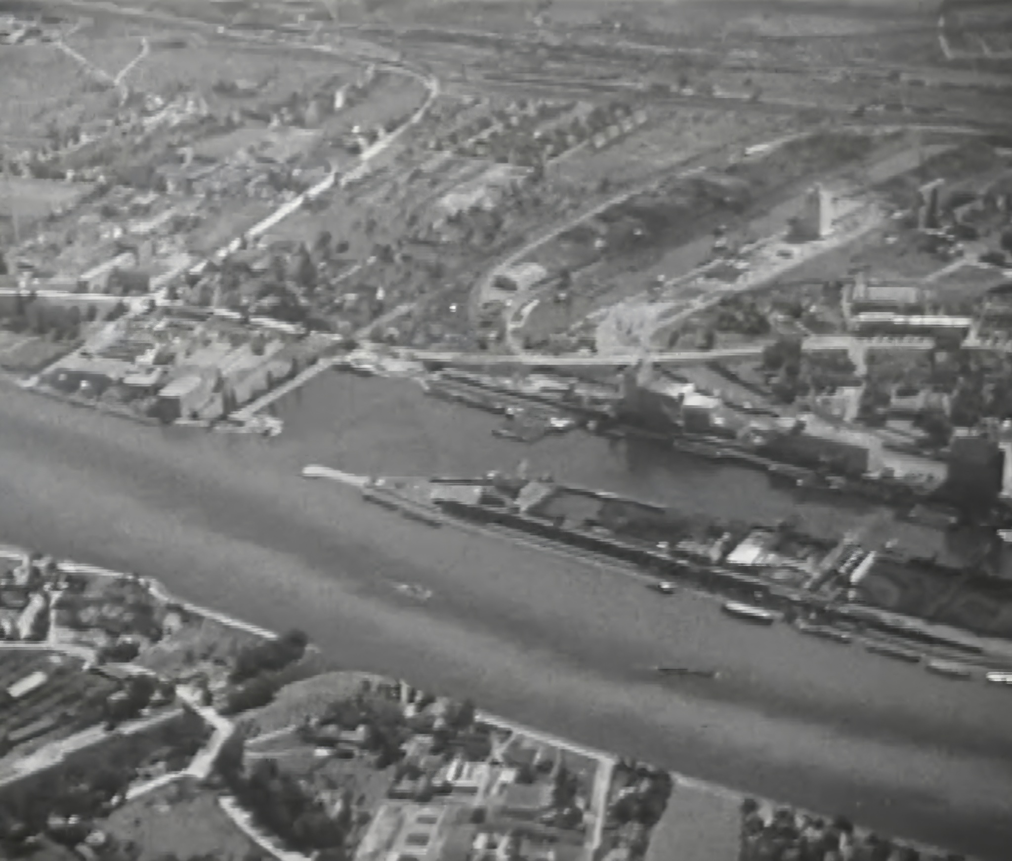 Bomben auf Kembs und der Rheinhafen ohne Wasser am 7. Oktober 1944: «Mehrere Staffeln englischer Bomber greifen das Stauwerk Kembs unterhalb Basels mit Sechstonnen-Bomben an. Eine grössere Anzahl Explosionen, zum Teil von Zeitbomben herrührend, erschüttern die Luft so sehr, dass an einigen Stellen Basels die Scheiben in Brüche gehen. Infolge der Sprengung von Schützen am Stauwehr fliesst ein Teil des gestauten Rheinwassers ab; in Basel fällt der Rheinpegel im Verlauf von drei Stunden um beinahe drei Meter, so dass die im Kleinhüninger Hafenbecken II liegenden Schiffe raschestens abgeschleppt werden müssen.» (Basler Chronik) Das Foto von Hans Bertolf zeigt die MS Nidwalden, die – mit 18 weiteren Schiffen – im Hafenbecken II auf Grund liegt. Als Folge der Kriegseinwirkungen wurde im Oktober 1944 die Rheinschifffahrt eingestellt und erst im April 1946 wieder aufgenommen. (Bildquelle: Staatsarchiv Basel-Stadt, BSL 1060c 3/2/511)Das Stauwerk ist für die Schifffahrt in Basel von grosser Bedeutung: «Die Stauwirkung reicht bis oberhalb des Stadtgebietes von Basel. In den Hafenanlagen wurde die Wassertiefe durch den Stau um etwa 3 bis 4 m erhöht. Die seit der Inbetriebnahme des Kraftwerkes Kembs 1933 neu erstellten Hafenanlagen wurden auf das Vorhandensein des Kembser Staues ausgerichtet.» Das Hafenbecken I, der Klybeckquai und der Industriehafen St. Johann konnten ihren Betrieb auch bei niedrigem Pegel aufrechterhalten.