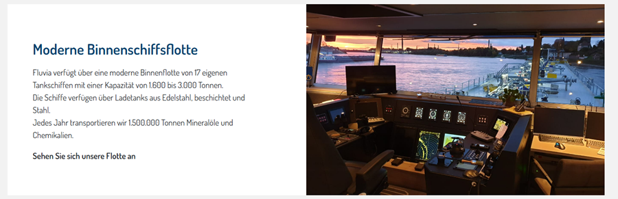 Sicherheit und Zuverlässigkeit sind zentrale Themen für Fluvia. Wir sind spezialisiert auf die Bereitstellung und Entwicklung von Tanktransporten, mit Schwerpunkt auf mineralischen und chemischen Produkten. Unsere Binnentanker sind mit Ladetanks aus Baustahl, beschichtetem Stahl oder Edelstahl ausgestattet, um verschiedene Produkte sicher transportieren zu können. Diese Tanker haben eine Nutzlastkapazität von 1.600 bis 3.000 Tonnen. Die Ausrüstung unserer Schiffe und die Einrichtungen für unser Personal sind so konzipiert, dass sie die bestmögliche Sicherheit und Zuverlässigkeit gewährleisten. Unsere SHEQ-Abteilung überwacht den Grad der Qualität, Sicherheit und Zuverlässigkeit und arbeitet nach den neuesten Verfahren und Richtlinien. Die Gesamtheit der Menschen, Verfahren und Systeme stellt sicher, dass Fluvia ein zuverlässiger Partner für seine Kunden ist.