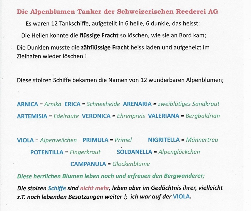 Die einst so stolzen Blumentanker haben über Jahrzehnte das Bild auf dem Rhein geprägt. Tag und Nacht waren sie zwischen den Nordseehäfen und Basel anzutreffen und haben so mitgeholfen die Versorgung der Schweiz mit flüssigem Brennstoffen sicherzustellen.