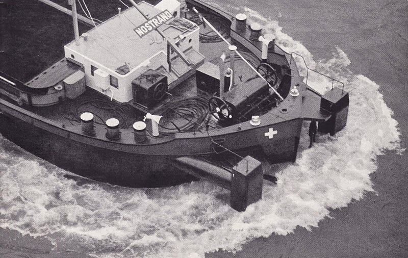 GMS NOSTRANO war das erste Schiff, das mit Schubhörner ausgerüstet wurde.