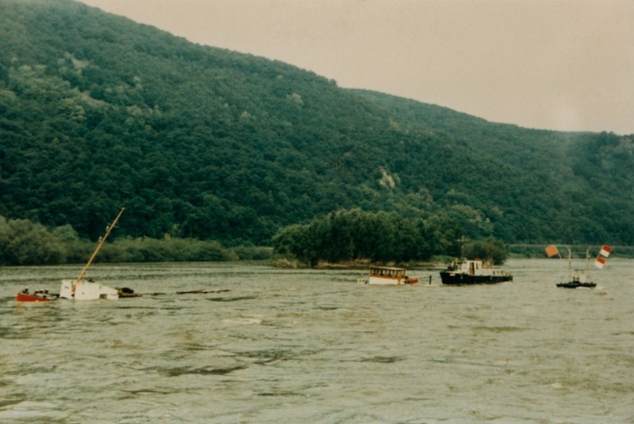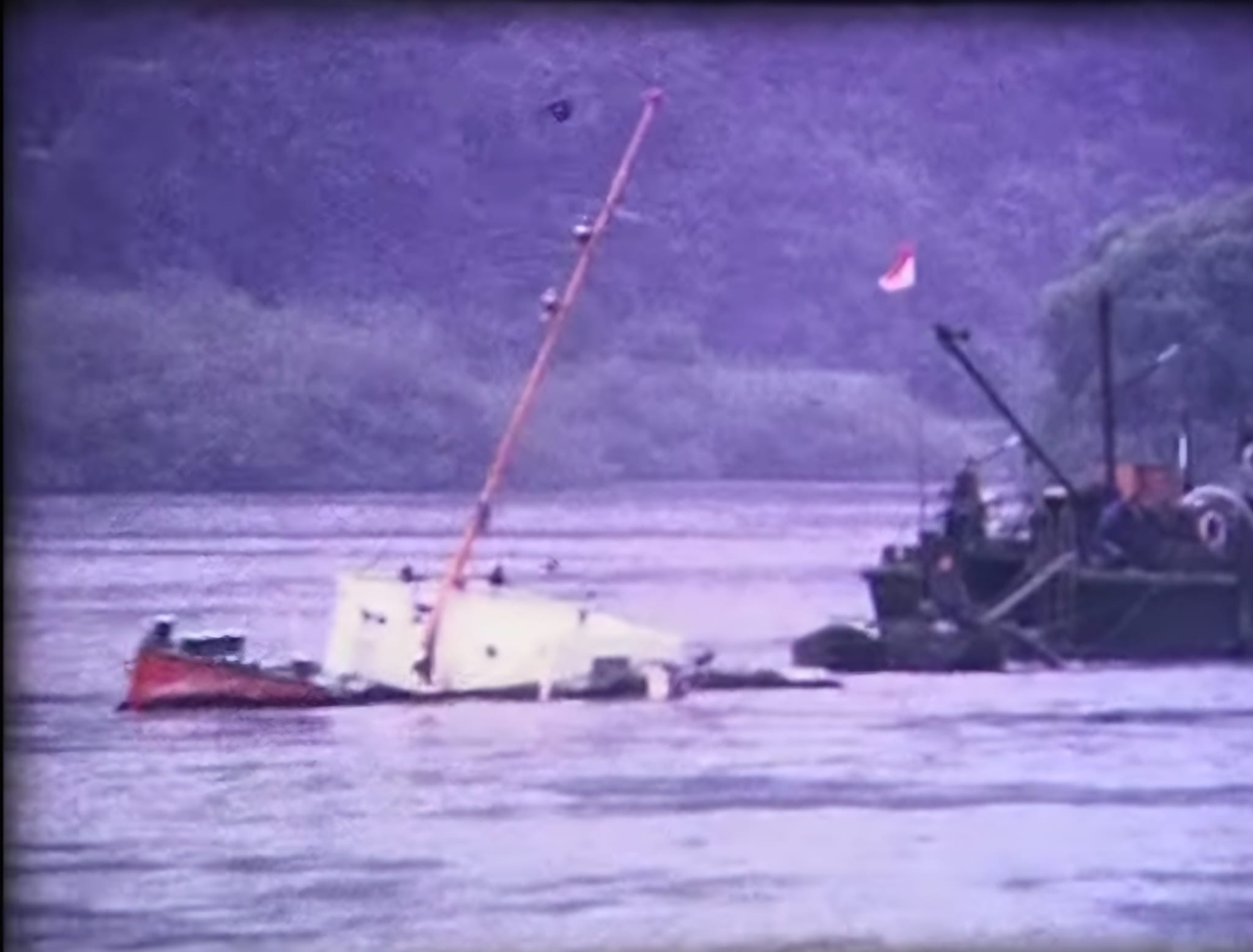 GMS VIAMALA gesunken im neuen Fahrwasser in Bingen am 09.02.1967